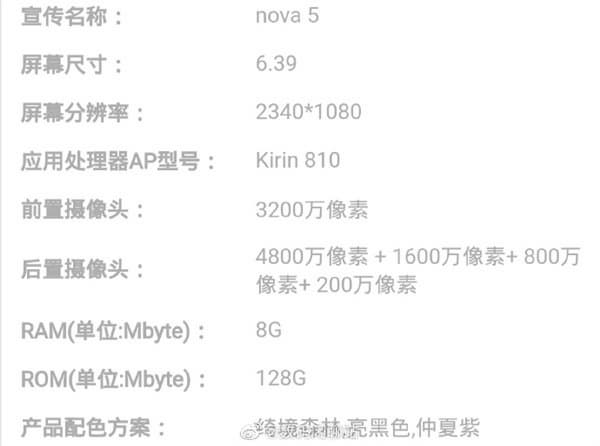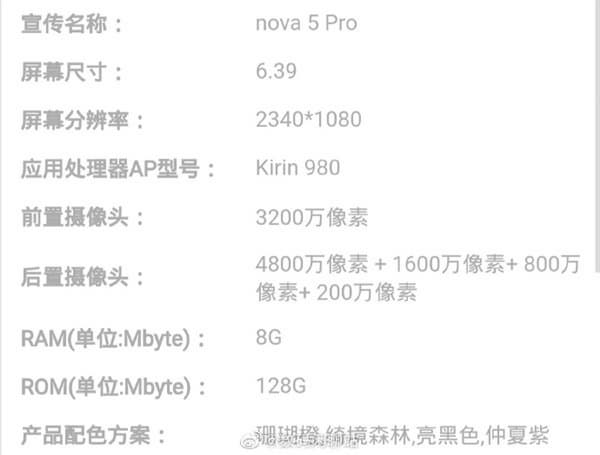 В конфигурации Nova 5i значится дисплей диагональю 6,4 дюйма, у двух других моделей – 6,39 дюйма. Разрешение Nova 5i – 2310 x 1080 пикселей, остальных – 2340 х 1080 пикселей.