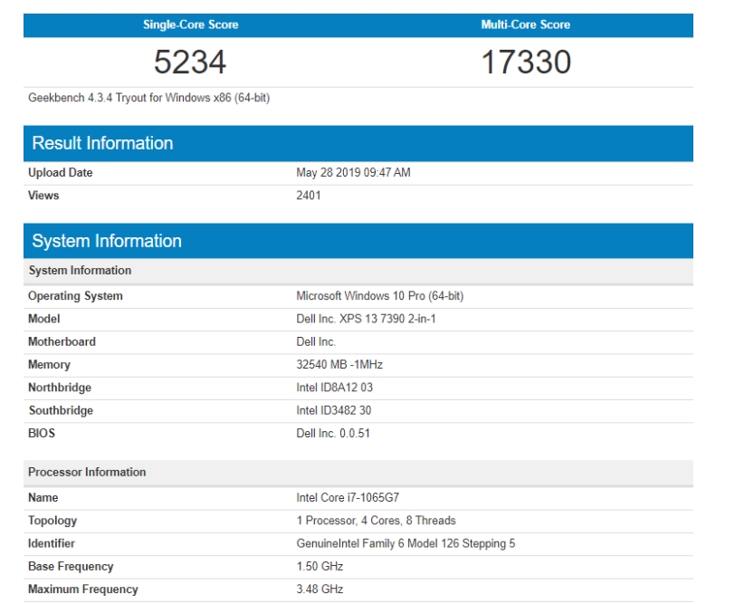 Впечатляет и результат Core i7-1065G7 в Geekbench, где процессор набрал 5234 и 17 330 баллов в однопоточном и многопоточном режимах. Для сравнения, в однопоточном тесте подобные показатели показывает Core i9-8950HK.