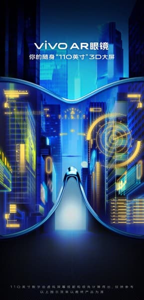 В частности, Vivo собирается показать очки дополненной реальности, которые позволяют демонстрировать трехмерное изображение, а также будут выступать аналогом 110-дюймового экрана, хотя расстояние, с которого нужно смотреть на подобный экран для достижения аналогичного эффекта, тактично умалчивается.