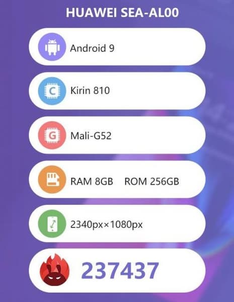 В тесте AnTuTu смартфон Nova 5 набирает более 237 000 баллов, что существенно больше, чем у Snapdragon 730, больше, чем у Kirin 970, хотя и не дотягивает до результата Snapdragon 845.