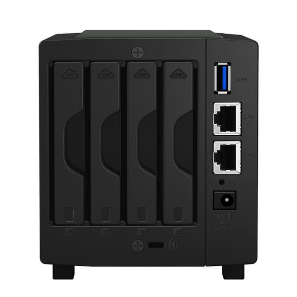 Основой хранилища выступает двухъядерный 32-разрядный процессор Marvell Armada 385 88F6820, работающий на частоте 1,33 ГГц. В его распоряжении есть 512 МБ памяти DDR3L. Возможность сетевого подключения обеспечена наличием двух портов Gigabit Ethernet с поддержкой агрегации и резервирования. Скорость чтения превышает 223 МБ/с. Оснащение NAS включает два порта USB 3.0. Для охлаждения накопителей используется один 60-миллиметровый вентилятор.