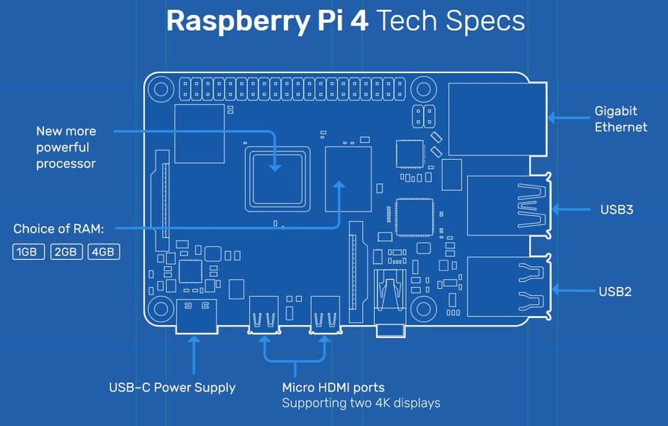 Конфигурация системы может включать 1, 2 или 4 ГБ памяти LPDDR4-2400 SDRAM. В оснащение входят средства беспроводного подключения IEEE 802.11ac Wi-Fi (2,4 и 5,0 ГГц) и Bluetooth 5.0 BLE. Кроме того, есть порт Gigabit Ethernet, по два порта USB 3.0 и USB 2.0. Для многих потенциальных покупателей наиболее интересной деталью оснащения станет пара выходов micro-HDMI, каждый из которых поддерживает видео 4К с кадровой частотой 60 Гц. Конечно, есть привычный по другим моделям слот microSD и двухрядный разъем с сигналами MIPI, GPIO и т.п., позволяющий подключать интерфейсные платы. Питание подается через разъем USB-C.