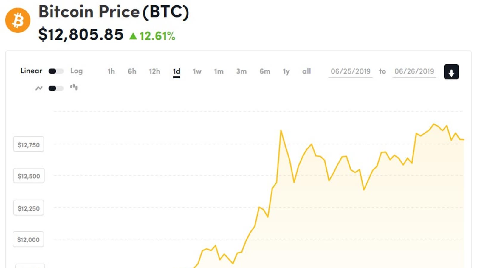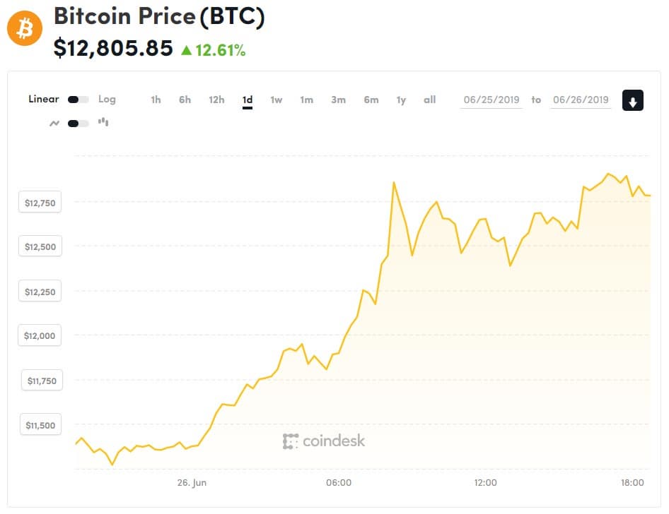 Курс криптовалюты Bitcoin продолжает расти. Совсем недавно он подскочил до 11 000, после чего рост продолжился — да так, что лишь за последние сутки криптовалюта подорожала почти 1500 долларов, на некоторое время вплотную приблизившись к отметке 13 000 долларов.