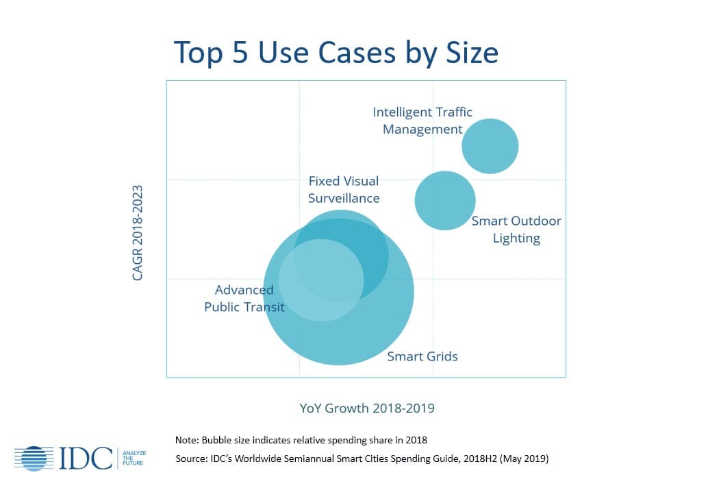 Специалисты аналитической компании IDC подготовили новый прогноз, в котором сказано, что глобальные расходы на инициативы в области умных городов в 2023 году достигнут 189,5 млрд долларов. Главными приоритетами этих инициатив названы энергетические и инфраструктурные проекты. За ними по расходам следует общественная безопасность и умный транспорт. Суммарно на приоритетные области будет приходиться более половины всех расходов умных городов в период с 2019 по 2023 год, охватываемый прогнозом.