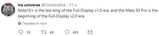Впрочем, судя по другому высказыванию инсайдера, по части «безрамочности» Galaxy Note 10 не станет эталоном в текущем году. Как пишет источник, если Galaxy Note 10 в текущем году завершит эру «Full-Display v1.0», то Huawei Mate 30 Pro запустит эру «Full-Display v2.0». Никаких подробностей на этот счет пока нет, но это послание содержит намек на более тонкие рамки в китайской модели. Или же их полное отсутствие.