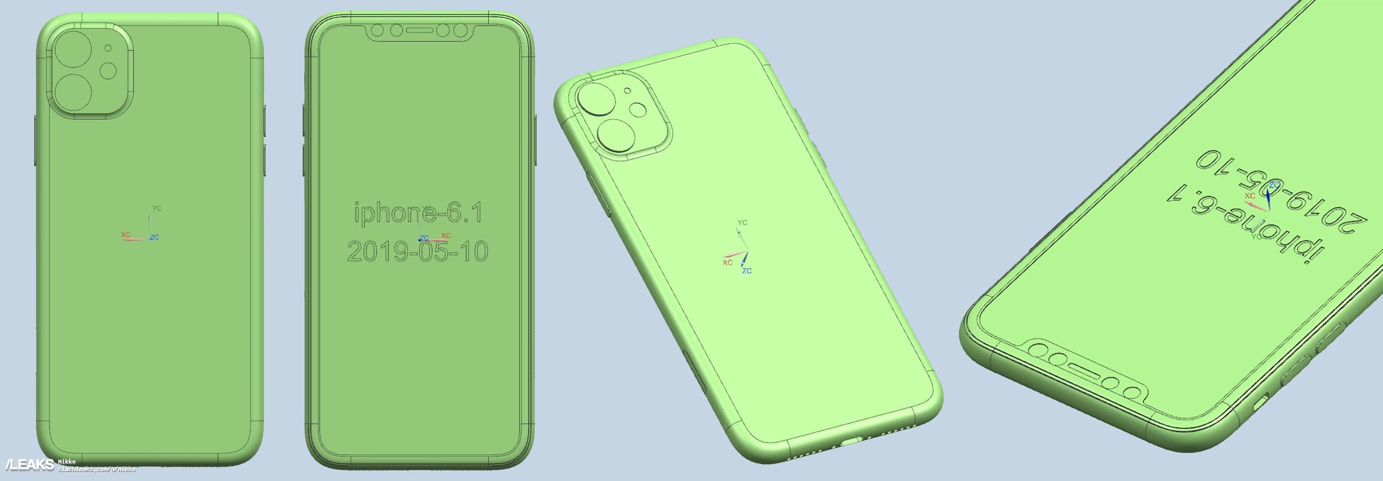 На сайте Slashleaks опубликовали изображения трехмерных моделей смартфонов iPhone XI, iPhone XI Max и iPhone XIR, которые были созданы на базе реальных чертежей данных устройств.