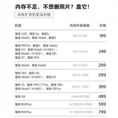 Компания поделилась списком из 24 моделей смартфонов, которые являются частью этой программы. Стоимость программы расширения памяти начинается с отметки около 29 долларов. За эти деньги может увеличить с 16 до 32 ГБ память Meizu U20, 5s, 5, Note5, Note6 и Meizu 6.