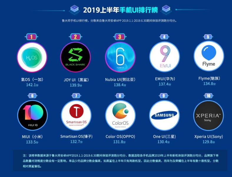 А вот рейтинг самых популярных графических оболочек на базе Android оказался несколько неожиданным: лидируют HydrogenOS, Joy UI и Nubia UI. Следом идут EMUI и Flyme. MIUI, Smartisan OS, Color OS, One UI и Xperia UI замыкают десятку.