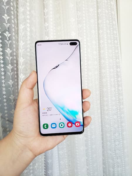 На следующей фотографии показан смартфон Galaxy S10+ с установленными фирменными обоями с Galaxy Note10.
