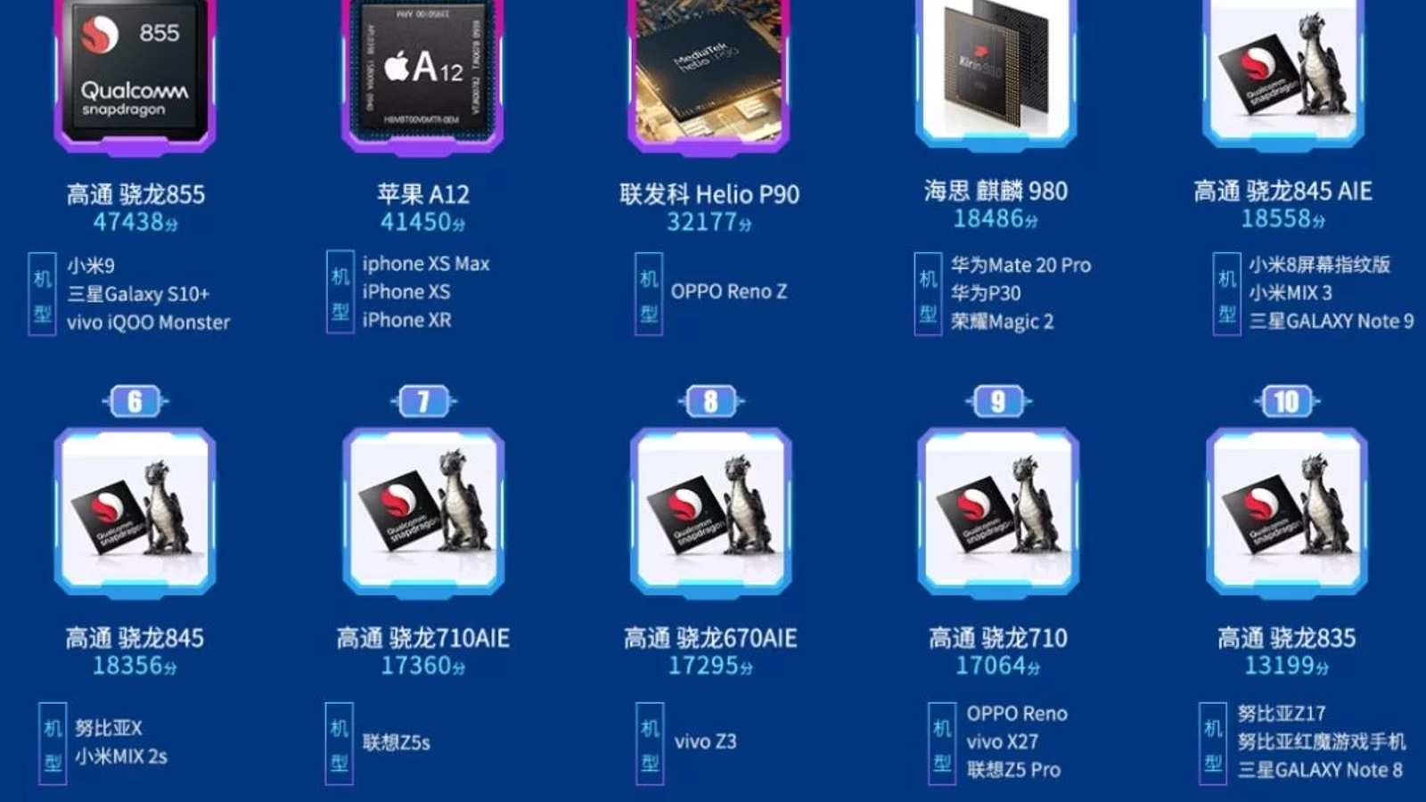 Первое место заняла однокристальная система Qualcomm Snapdragon 855, второе место занимает Apple A12, а на третьем неожиданно оказалась мобильная платформа MediaTek Helio P90, которая заставила Hisilicon Kirin 980 переместиться на четвертую позицию. Это является очень важной победой для MediaTek.