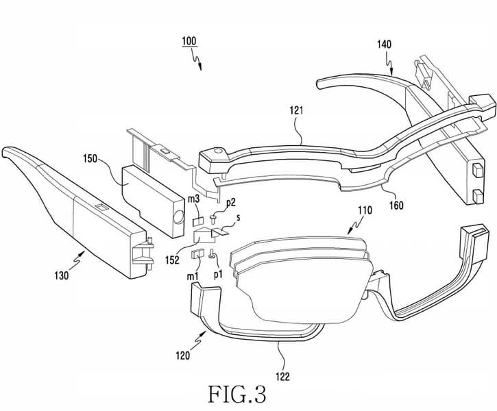 Ключевая особенность очков — складная конструкция. Она облегчает хранение и транспортировку устройства, делая его более практичным и удобным по сравнению с нынешними гарнитурами дополненной реальности, имеющими жесткую, монолитную конструкцию. Необходимость в жесткой конструкции обусловлена тем, что по ней проходит световод, связывающий проектор и элементы в стекле, направляющие формируемое проектором изображение в глаз. В патентуемой гарнитуре монолитная конструкция заменена составной, возможно — включающей призму в месте спряжения участков световодов, которое находится на стыке оправы и дужки.