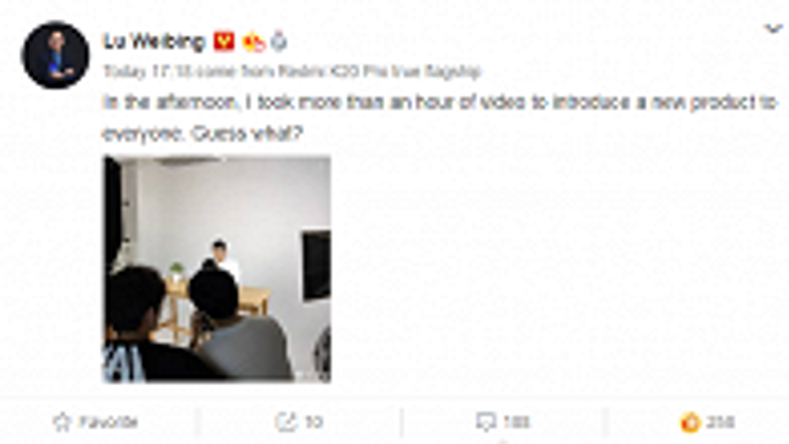 Вчера вице-президент Xiaomi и глава бренда Redmi Лу Вейбинг (Lu Weibing) на своей страничке в социальной сети Weibo заявил, что он готовится сделать неожиданный анонс.