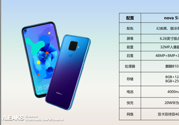 Четырехкамерный смартфон Huawei Nova 5i Pro со всеми характеристиками на официальных материалах