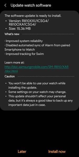 Прошивка под номером R810XXU1CSG4 имеет размер 15,36 МБ и приносит хорошие новости для тех, кто использует часы во время плавания.