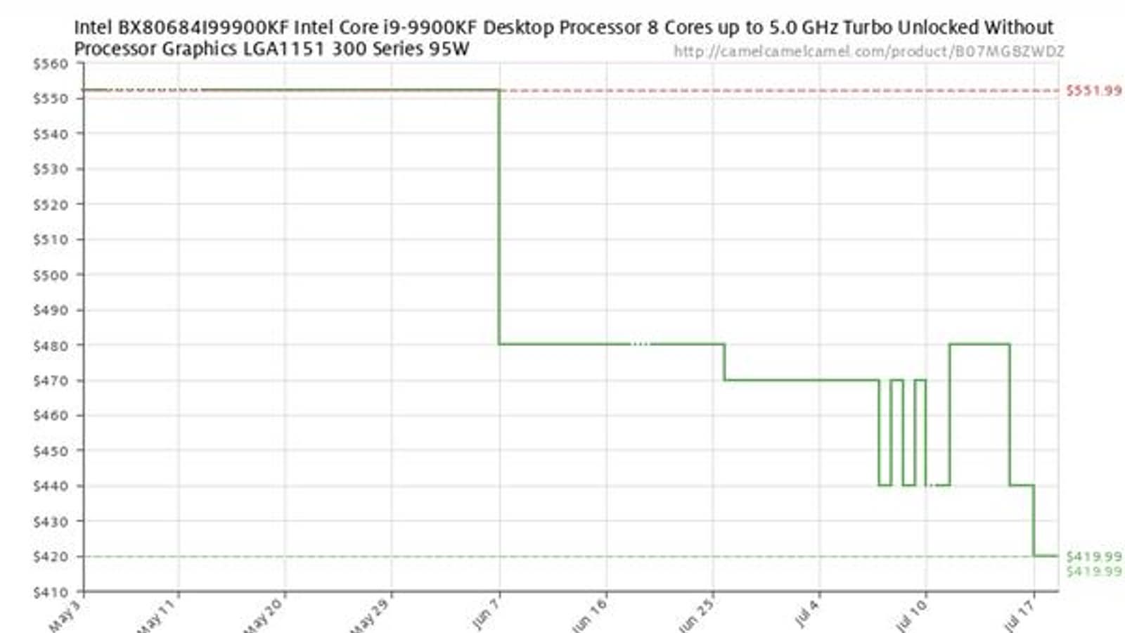 Этот CPU с отключенным графическим ядром (и потому нацеленный на энтузиастов) поступил в продажу относительно недавно. До начала июня стоимость его превышала $550 при оптовой отпускной цене чуть ниже $500 — вот он дефицит во всей красе. Но потом буквально за один день цена снизилась на $70, а потом после ряда снижений достигла отметки в $420. Это данные по рынку США, но вероятно повторение сценария и в других странах тоже.