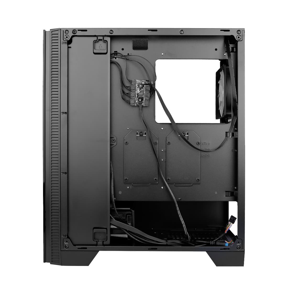 В NX500 можно установить до шести вентиляторов. Один 120-миллиметровый вентилятор с адресуемой подсветкой установлен штатно. Корпус вмещает плату размером до E-ATX, два накопителя типоразмера 2,5 дюйма и два накопителя типоразмера 3,5 дюйма (конечно, вместо них тоже можно поставить накопители типоразмера 2,5 дюйма). Максимально допустимая длина карт расширения — 350 мм, высота процессорных систем охлаждения — 165 мм.
