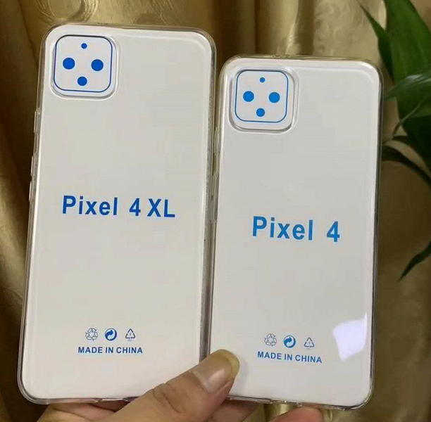 В Сети появилась фотография, на которой изображены чехлы для смартфонов Google Pixel 4 и Pixel 4XL, а также картонные вставки, содержащие названия смартфонов и схематическое изображение основной камеры.