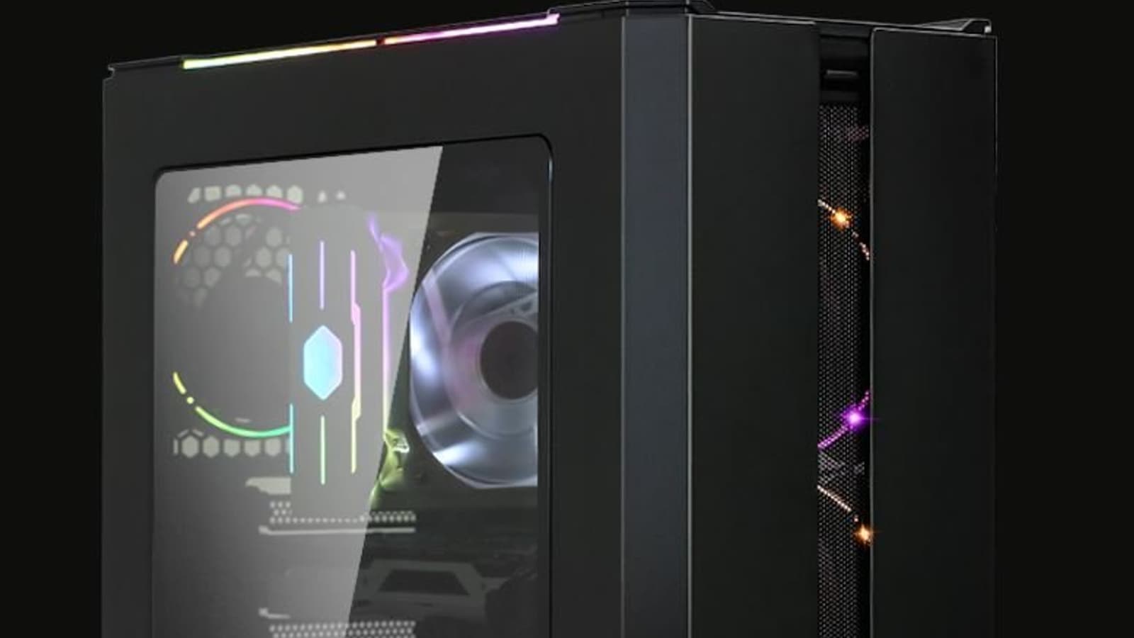 На передней стенке установлено три 120-миллиметровых вентилятора с адресуемой подсветкой. Еще один такой же есть на задней стенке. В качестве альтернативы можно поставить 140-миллиметровые вентиляторы, но на передней стенке их поместится только два. Сверху есть места еще для двух вентиляторов типоразмера 120 или 140 мм. При использовании СЖО переднюю стенку можно отвести под радиатор длиной до 360 мм. На задней помещается 120-миллиметровый радиатор.