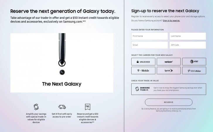 Компания предлагает потенциальным покупателям в США возможность заранее зарезервировать свои устройства и сэкономить благодаря программе Samsung Trade-in. В данный момент предложение действует для владельцев смартфонов Samsung, Apple и Google.