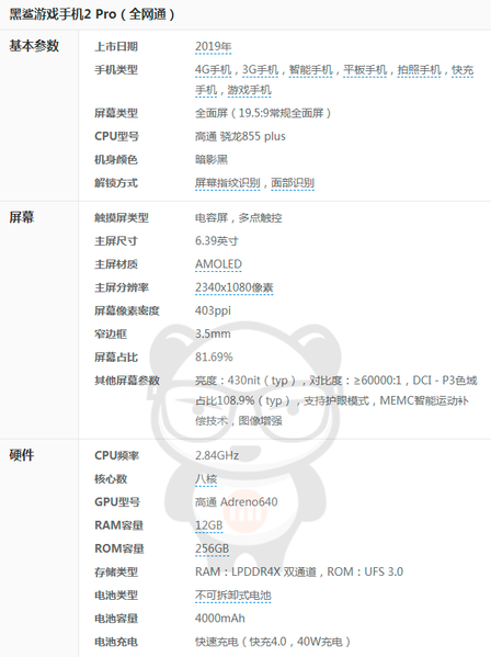 Как и ожидалось, в Сети появились технические подробности об игровом смартфоне Black Shark 2 Pro. Мы уже знаем, что эта модель построена на однокристальной платформе Qualcomm Snapdragon 855 Plus и имеет 12 ГБ оперативной памяти во всех трех конфигурациях, а теперь есть данные об экране и подсистеме питания.