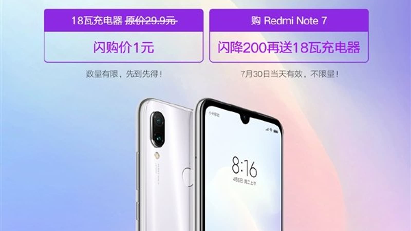 Кроме того, новые покупатели Redmi Note 7 также получат в подарок зарядное устройство мощностью 18 Вт по символической цене 1 юань (15 центов). Стандартная цена такого адаптера составляет 5 долларов.