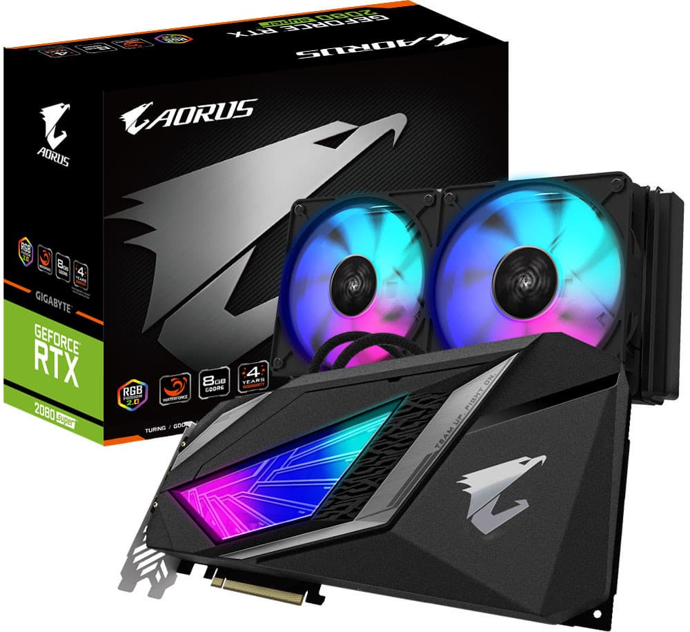Компания Gigabyte на днях представила 3D-карту Aorus GeForce RTX 2080 Super Xtreme WaterForce 8G, особенностью которой является система жидкостного охлаждения. Водоблок и помпа находятся на плате, под кожухом, украшенным подсветкой. Водоблок отводит тепло не только от графического процессора, но также от микросхем памяти и VRM.