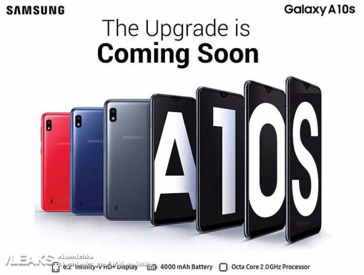 Ресурс Slashleaks опубликовал официальное рекламное изображение смартфона Samsung Galaxy A10s, который станет обновленной версией модели Galaxy A10.