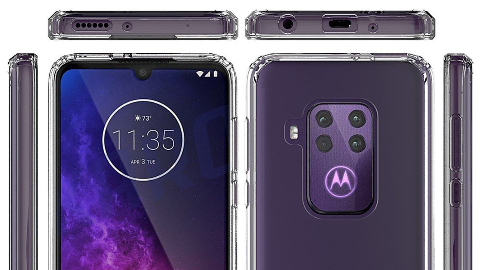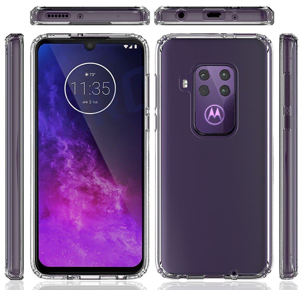 Как видно, Motorola One Pro получил основную камеру с четырьмя датчиками, а фронтальная камера вписана в каплевидный вырез дисплея. В наличии также порт USB-C и стандартный разъем для наушников, а вот громкоговоритель один.