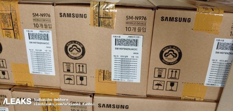 Теперь же на фото запечатлены коробки со смартфонами упаковки Samsung Galaxy Note 10+ 5G (модельный номер SM-N976, 256 ГБ флэш-памяти). Источник добавляет, что в коробках упакованы смартфоны в трех цветах: Aura White, Aura Black и Aura Glow.