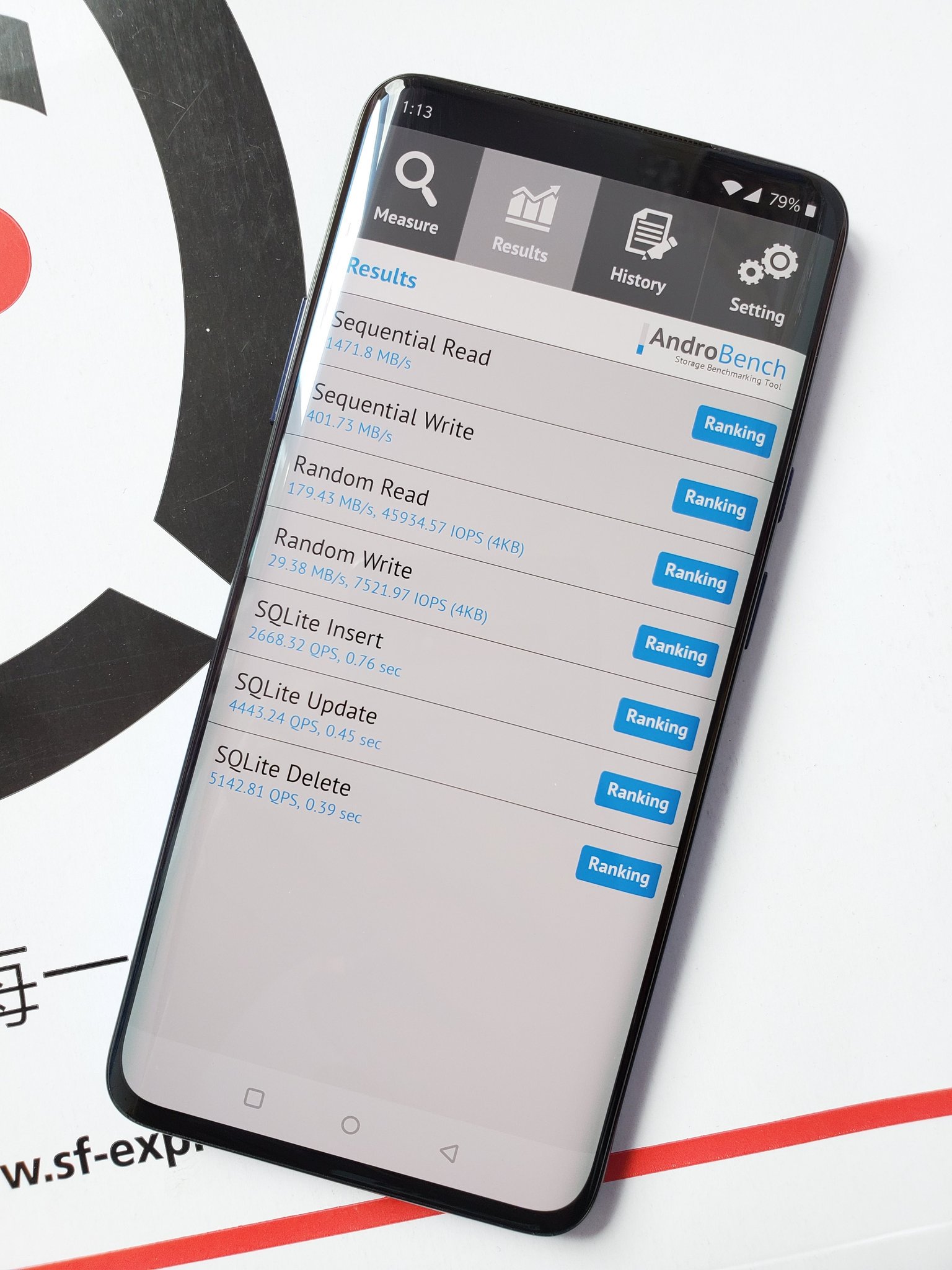Своё заявление источник подкрепил скриншотом AndroBench для тестирования памяти на Samsung Galaxy Note10, а также фотографиями работающих OnePlus 7 Pro и Galaxy Fold с аналогичным запущенным бенчмарком.