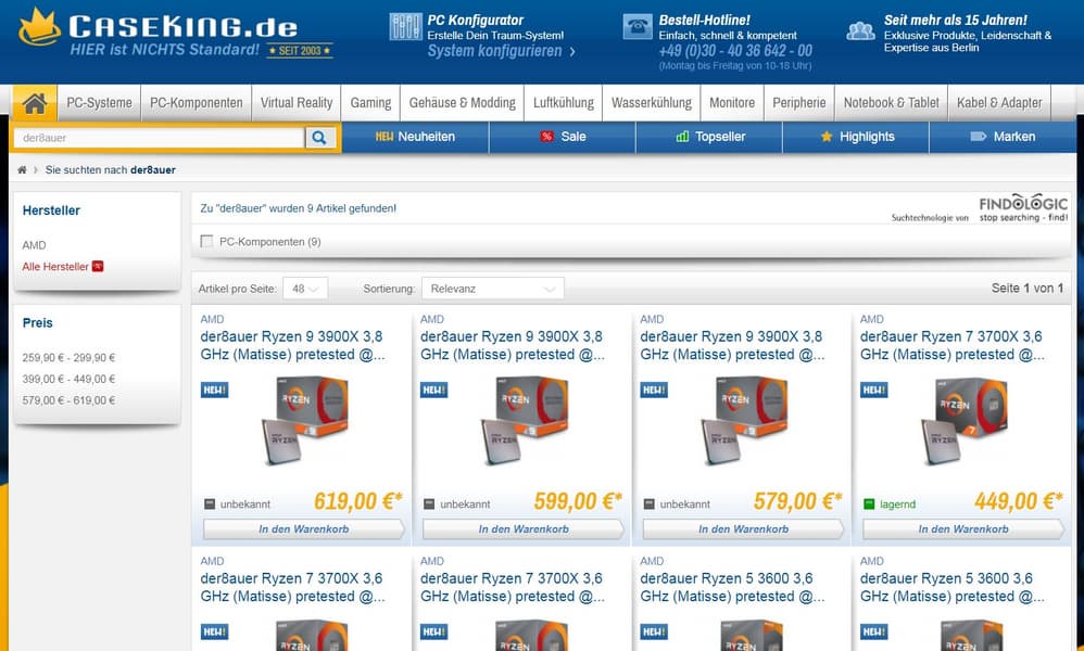 Не секрет, что возможность разгона процессоров одной и той же модели варьируется от экземпляра к экземпляру. Ориентируясь на покупателей, которые планируют разогнать процессор, не хотят рисковать и готовы заплатить за гарантированную возможность разгона, магазин Caseking.de предлагает процессоры AMD Ryzen 3000, отсортированных по проверенной частоте разгона.