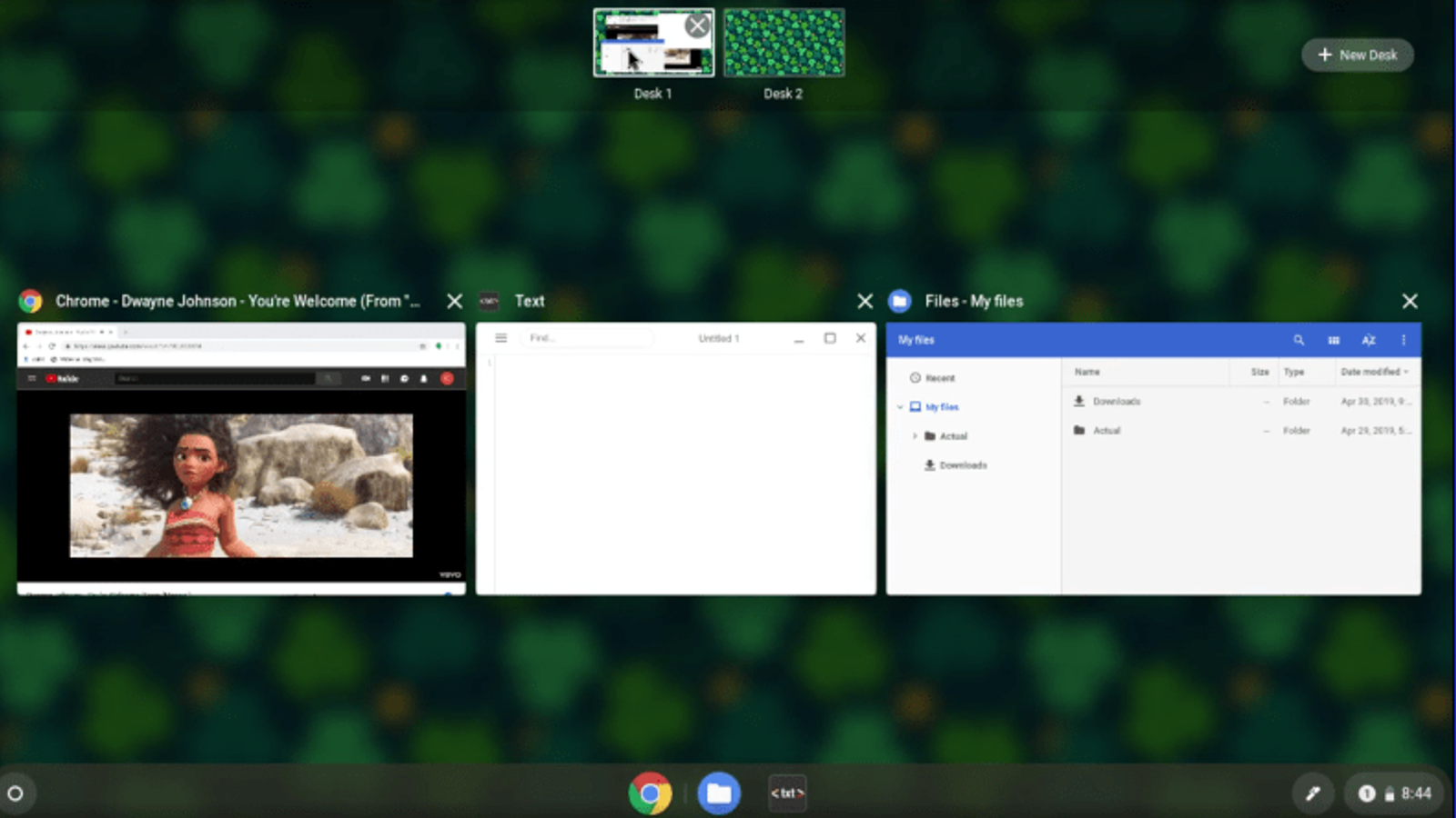 В Chrome OS добавлена базовая функция, на протяжении многих лет доступная пользователям других компьютерных платформ: виртуальные рабочие столы. В Chrome OS 76 эта функция называется Virtual Desks. Как и в других ОС, она позволяет организовывать рабочее пространство, моментально переключаясь в новый контекст, например, разделяя работу и домашние задачи, подготовку документов и развлечения и т. д.