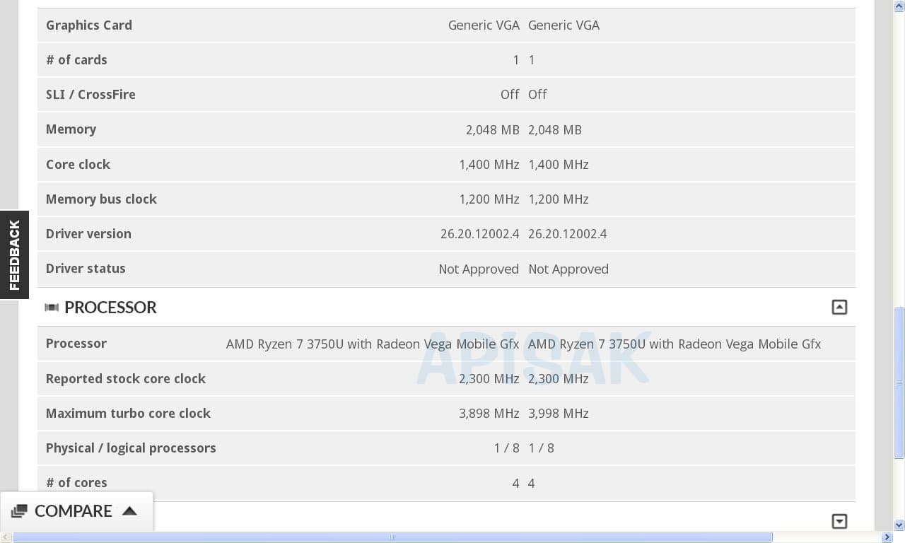 Как Ryzen 5 3550U является энергоэффективной версией модели Ryzen 5 3550H, так и Ryzen 7 3750U — это 15-ваттный «аналог» 35-ваттного Ryzen 7 3750H. Это четырехъядерный CPU, работающий на частоте 2,3-4,0 ГГц. По этим характеристикам никаких отличий от Ryzen 7 3700U нет, но можно ожидать, что улучшится графическая составляющая — GPU, в роли которого выступит Vega 10 или 11.