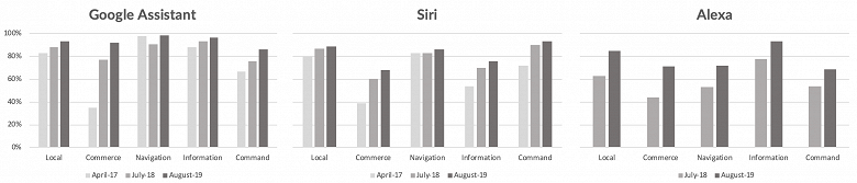 К примеру, Siri в 2017 году смогла корректно ответить на 66,1% вопросов, в 2018 — на 78,5%, а в этом году уже на 83,1%.