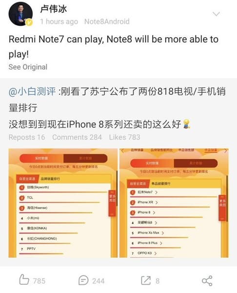 Скорее всего, ни о какой полноценной премьере новинок речь не пойдет — обычно в преддверии нее публикуется масса тизерных картинок, которых пока не было. Но завтра топ-менеджер может объявить даты анонса горячих новинок: телевизоров и смартфонов — Redmi 8, Redmi 8A, Redmi Note 8 и Redmi Note 8 Pro.