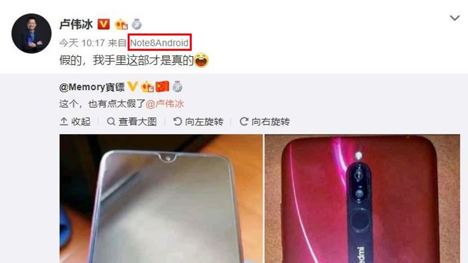 Топ-менеджер уже пользуется Redmi Note 8, свое очередное сообщение (опровергающее, к слову, живые фото модели, опубликованные вчера) он написал именно с этого смартфона. Лю Вейбинг также подтвердил, что аппарат получил быструю зарядку — мощностью более 10 Вт. Скорее всего мощность зарядки модели составит 18 или 20 Вт.