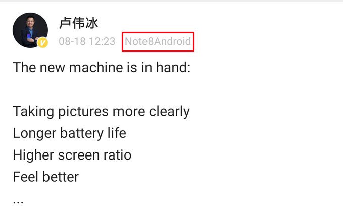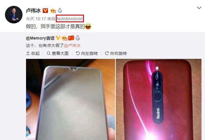 Топ-менеджер уже пользуется Redmi Note 8, свое очередное сообщение (опровергающее, к слову, живые фото модели, опубликованные вчера) он написал именно с этого смартфона. Лю Вейбинг также подтвердил, что аппарат получил быструю зарядку — мощностью более 10 Вт. Скорее всего мощность зарядки модели составит 18 или 20 Вт.