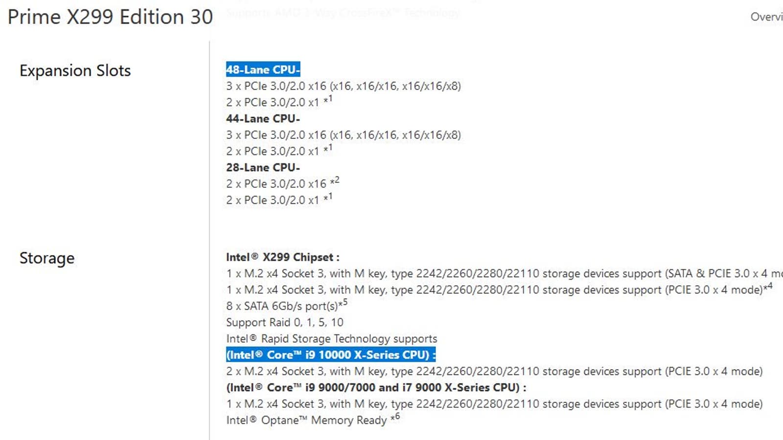 Благодаря Asus мы теперь знаем, что процессоры Cascade Lake-X сформируют линейку Core i9-10000. Названий конкретных моделей нет, но в целом можно догадаться, посмотрев на текущие CPU.