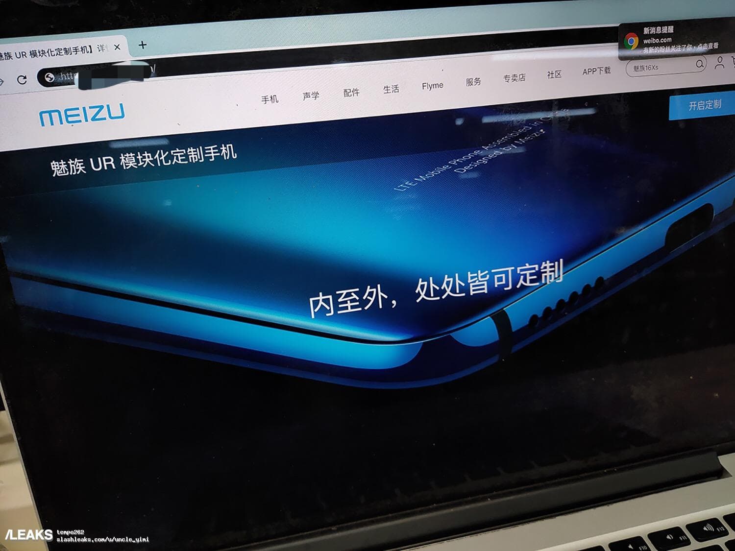Единственное изображение демонстрирует нижнюю часть задней панели. Также можно с уверенностью сказать, что это не преемник Meizu ZERO, так как у смартфона есть отверстия для динамика и разъем USB-C. Буквы UR могут указывать на английские слова You Are, которые часто сокращают так в переписке.