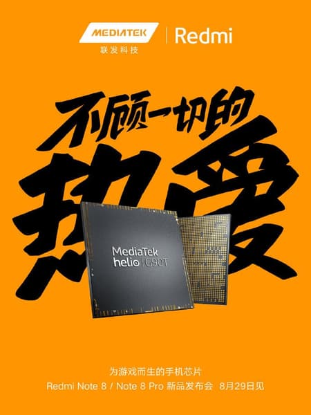 И вот относительно последнего пункта теперь есть подробности. Судя по всему, обе новинки Redmi получат SoC MediaTek Helio G90T. По крайней мере, сама MediaTek опубликовала рекламный постер, из которого это следует. Также компания подтвердила и дату анонса — 29 августа.