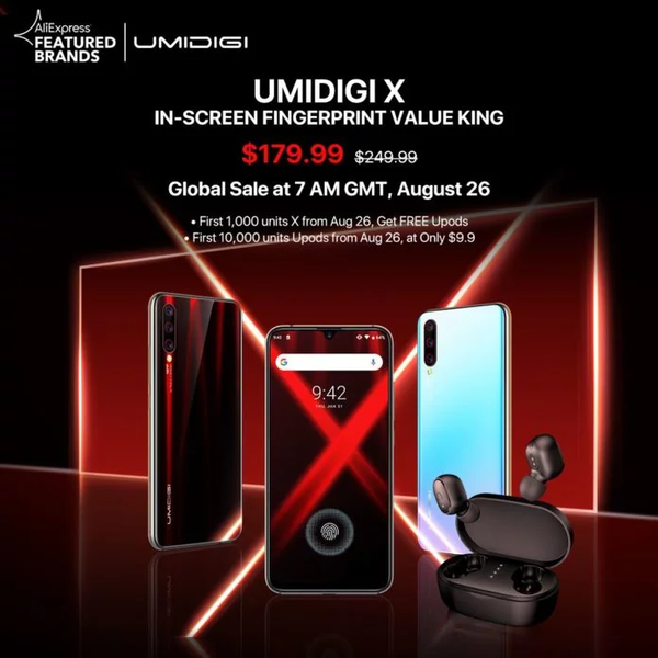 Заинтересованные пользователи могут купить Umidigi X по цене $180 уже с 26 августа. Первые 1000 покупателей получат в подарок беспроводные наушники Umidigi Upods. Первые 10 000 человек смогут приобрести наушники за 10 долларов.