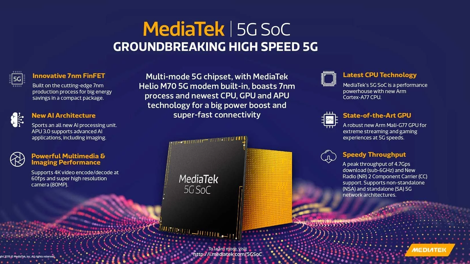 Такое заявление сделали представители компании MediaTek, которая занимается поставками однокристальных систем для смартфонов, а также готовится выпустить свою первую платформу с поддержкой 5G во второй половине этого года.