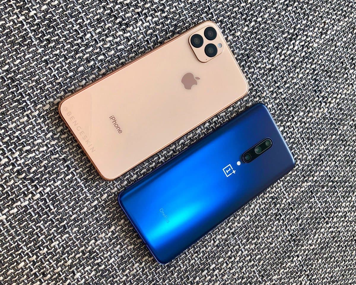 На одной из фотографий нам предлагают сравнить по габаритам и дизайну iPhone 11 Pro с флагманском китайской компании OnePlus, который вышел весной под названием OnePlus 7 Pro и предложил пользователям дисплей с частотой обновления 90 Гц, флагманскую основную и выдвижную фронтальную камеры.