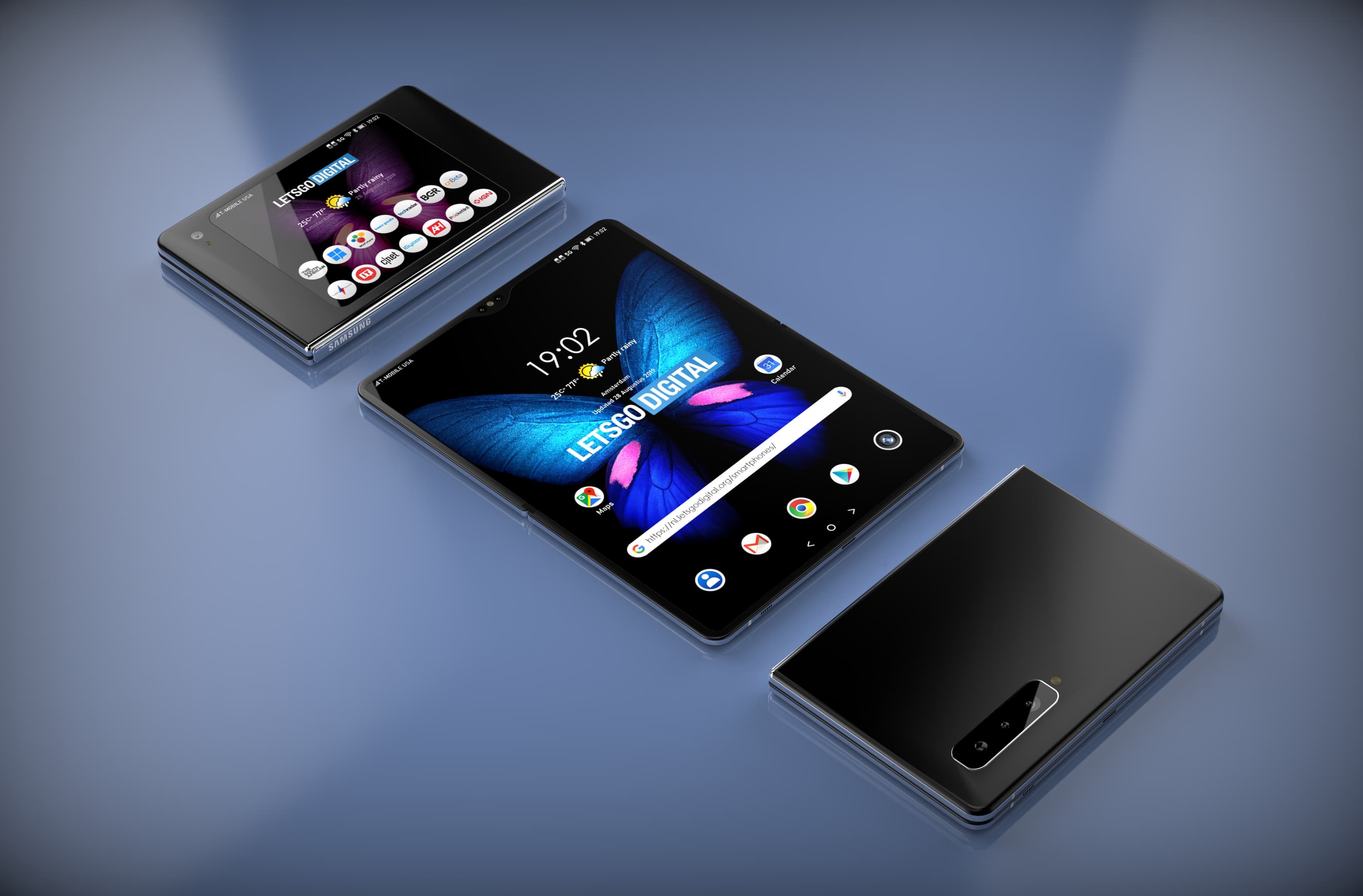 Ресурс Letsgodigital, используя опубликованные эскизы из патентов Samsung, создал трехмерную модель возможного преемника смартфона Samsung Galaxy Fold, который уже находится в разработке.