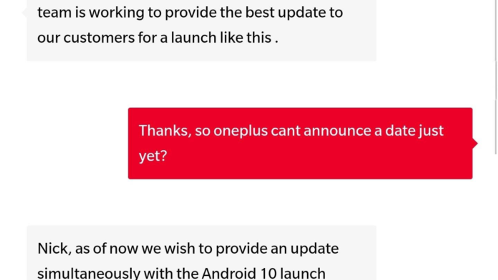 OnePlus 7 и OnePlus 7 Pro Android 10 обещана в этот же день, судя по переписке одного из пользователей и службы техподдержки – она представлена на изображении ниже.