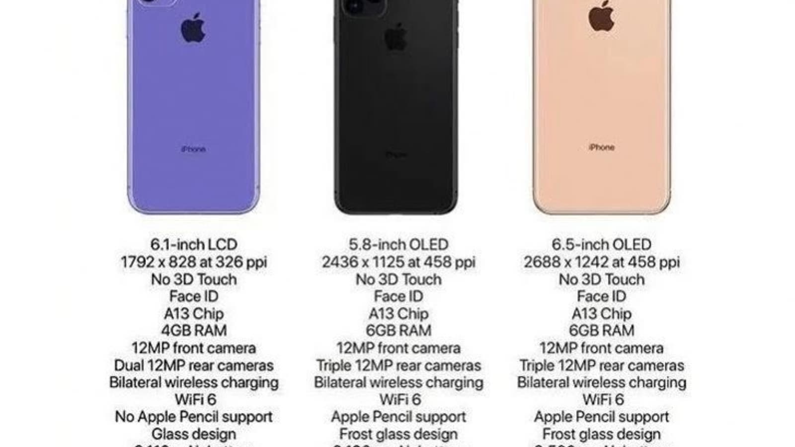 Все три новых iPhone получат SoC Apple A13, адаптеры Wi-Fi 6 и камеры с датчиками разрешением 12 Мп (два в обычном iPhone 11, по три в моделях Pro). Объем оперативной памяти в iPhone 11 – 4 ГБ, в двух других моделях – по 6 ГБ. В соответствии со статусом разнятся объемы флэш-памяти и емкости аккумуляторов.