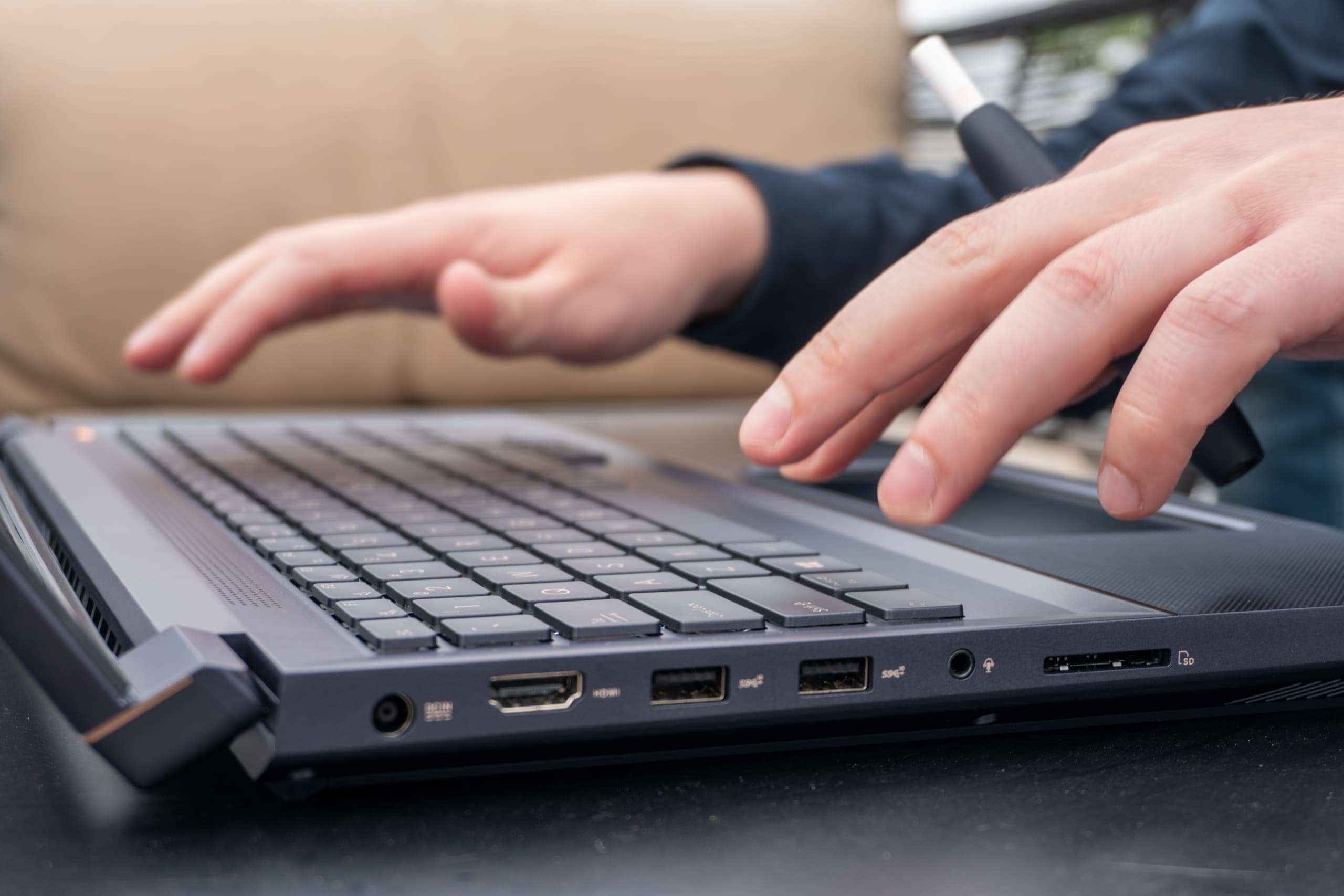 Оперативной памяти тут может быть 32 ГБ, а единственный SSD имеет объём до 1 ТБ. Набор портов — лишь три USB-C, но все с поддержкой Thunderbolt 3. У этой модели нет панели ScreenPad. Габариты равны 364,5 х 245 х 24,2 мм при массе 2,9 кг.