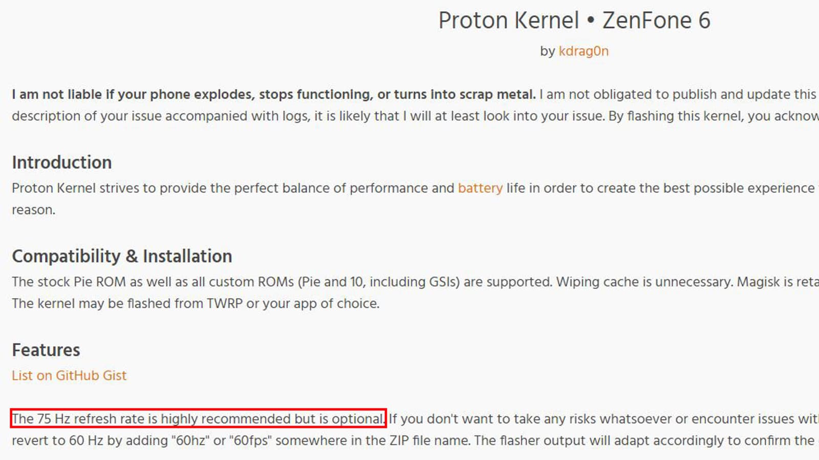 Ядро Proton, как сообщается, полностью совместимо со стандартной прошивкой. Помимо повышения кадровой частоты экрана (функция в нем была реализована и ранее, но теперь возможность активируется автоматически после перезагрузки, в то время как в версии 1.1 необходимо было реактивировать ее после каждой перезагрузки) реализован еще ряд улучшений. Ну а в целом энтузиасты ставили целью реализовать в ядре Proton самый оптимальный баланс автономности и производительности.