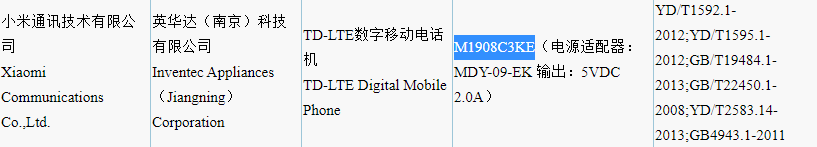 Модель обозначена номером M1908C3KE, именно под этим обозначением скрывается новинка. Увы, описание 3С традиционно скупо на подробности, но хотя бы известна мощность зарядки аппарата — 10 Вт.