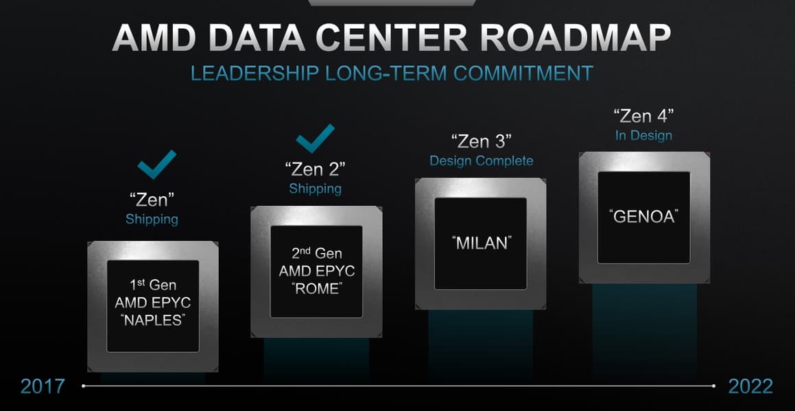 В серверном сегменте ситуация ровно такая же. Собственно, этот год показал, что разница во времени между выходом новых настольных и серверных процессоров невелика. Кодовое имя серверных CPU Epyc четвёртого поколения — Genoa.